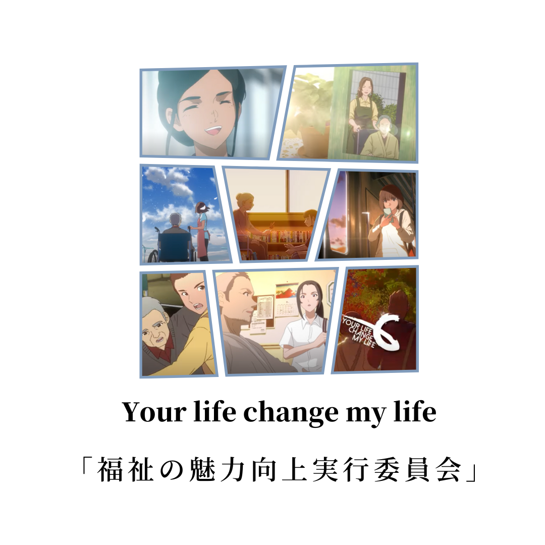 未だに福祉のイメージはそれほど明るいものではありません、私たちはそんな福祉のイメージを現実に近いものに変えていくため、13社の企業、法人(学校含む)からなる福祉の魅力向上実行委員会を設立し、クールジャパンの一つであるアニメーションを尚美学園大学(埼玉県)と協力、作成しています。